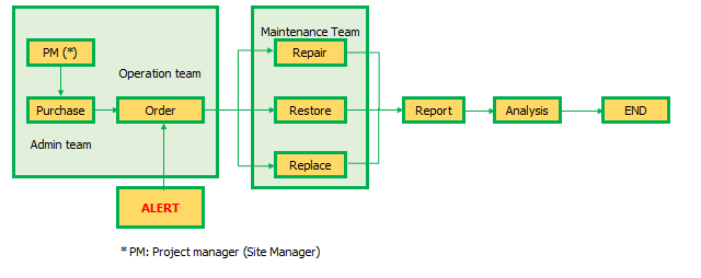 In addition, failures can cause significant damage to equipment, people, the immediate vicinity and/or end users of electricity. Accordingly, in order to prevent risks, operation and maintenance activities, including but not limited to, are necessary: Routine maintenance and corrective maintenance of equipment operation (if an emergency occurs).